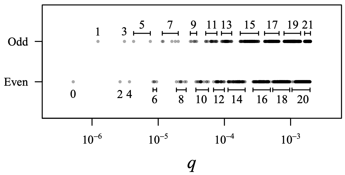 最後に、ここで示したようなマージに基づくアルゴリズムでは、実際にはサンプルが既存の重心とマージされる際に常に昇順で考慮されるという事実のために問題が発生する可能性がある。このため \(q=0\) 付近の重心が非対称に大きくなり、ダイジェストが構築される際に重心が少しずれるというという影響が生じる可能性がある。このずれは結果として得られるダイジェストが望んでいるより弱い順序になっていることを意味する。この問題はマージのスキャン順序を交互に変更することで (1 回目のパスで昇順、次のパスで降順) ある程度軽減できる。