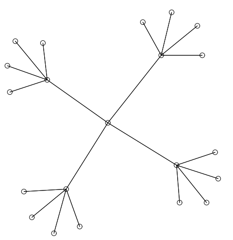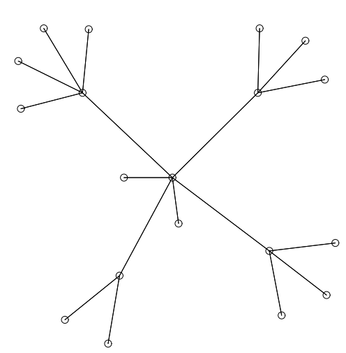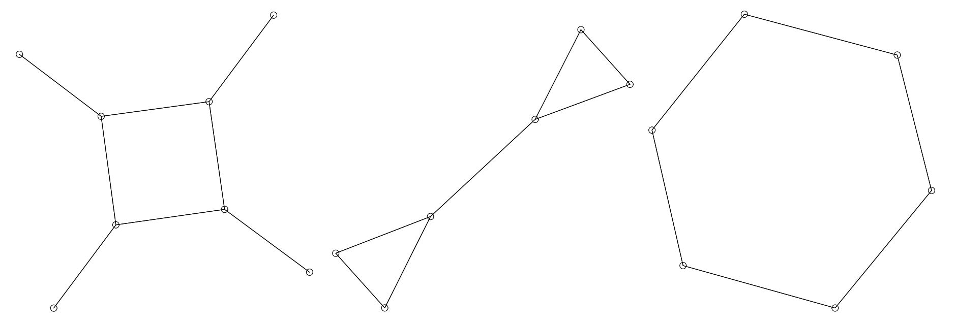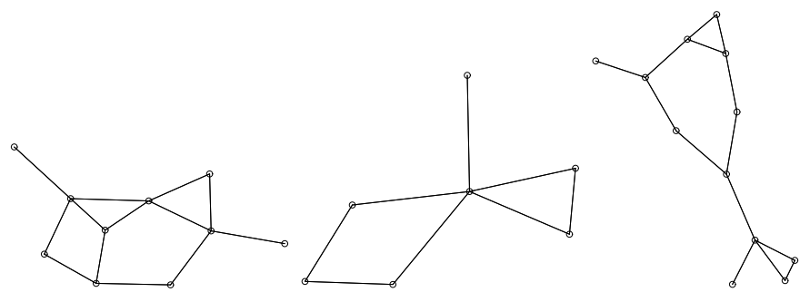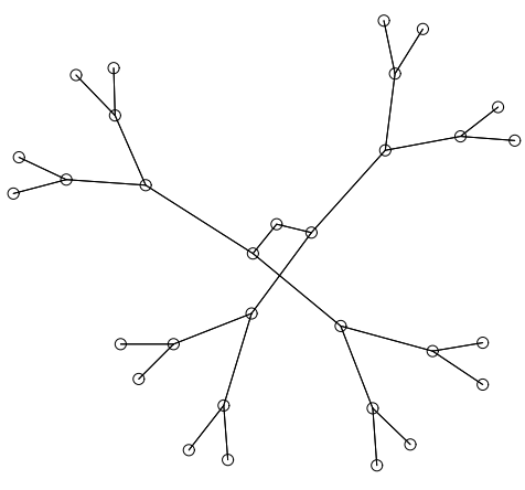 Kamada と Kawai は、Figure 36 と Figure 37 のような同型グラフは (回転と反射により) 同一のレイアウトを持つ一方で、Figure 38 と Figure 39 のように類似しているが同型ではないグラフは似ているが異なるレイアウトになることを示した。我々の結果はこれと一致している。
