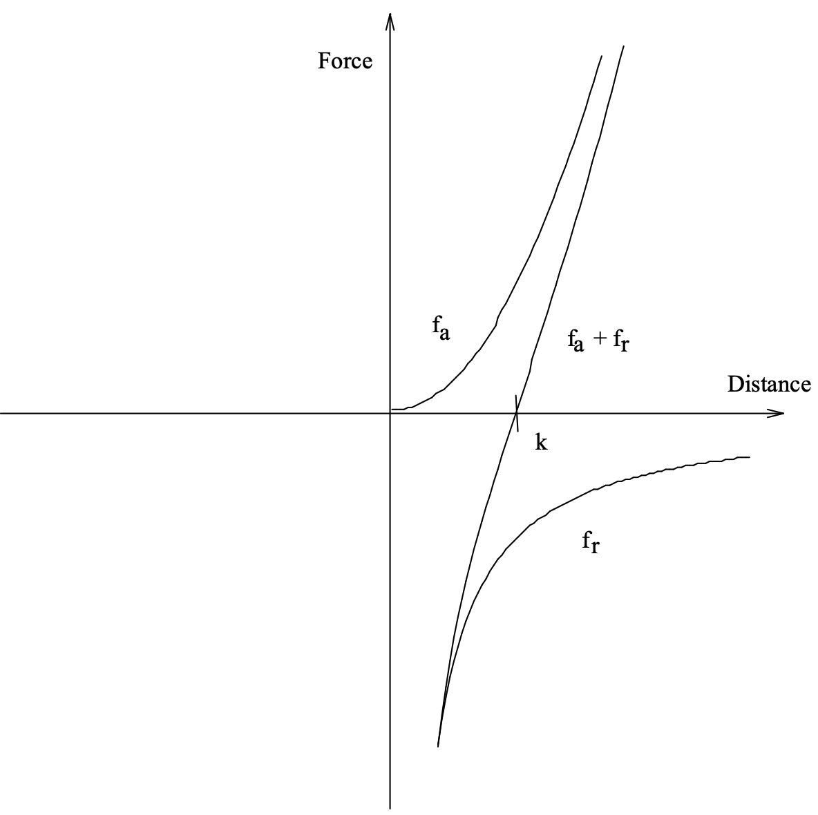 Eades の方程式は次のようなものだった。\[ \begin{eqnarray*} f_a(d) & = & k_a \log d \\ f_r(d) & = & k_r / d^2 \end{eqnarray*} \] 後に示すように、我々は Eades の式と同等の結果を達成したが、計算効率が悪いため彼の \(f_a\) 式は却下した。