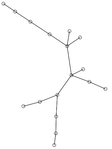 さらに、Figure 43, Figure 44, Figure 45, Figure 46 は一部は二分木ではない 4 つのツリーの例である。後者の 2 つについては根がどこにあるか分らない。実際、現在の実装では辺の方向が示されていないため、これらは実際には木ではなく回路のない無向平面グラフである。そして他の例ではどの頂点が根であるかが分っていると思い込んでいた。