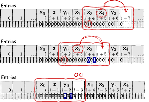 Fig 8. エントリの空きを \(i\) に近づくように移動させる。