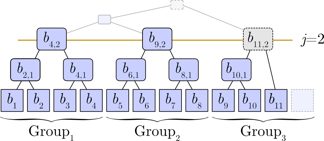 この文書の内容は、該当するアルゴリズムに関する論文や書籍が見つけられなかったため、今のところ個人的な研究です。要素の追加によりノードの積層が成長してゆく構造的特徴から、この構造を Stratified Hash Tree (層様のハッシュツリー) と名付けています。