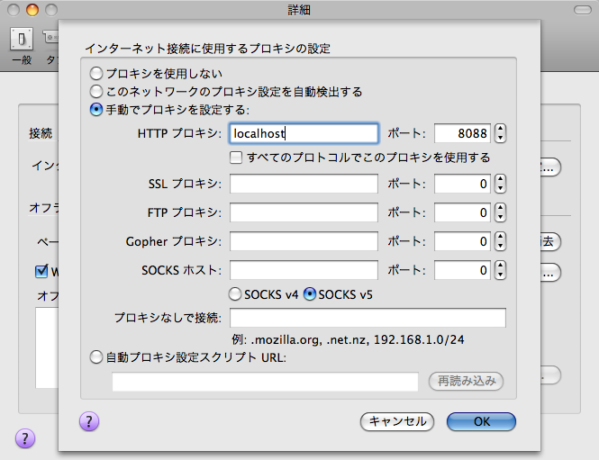 - ブラウザの設定で localhost:8088 のプロキシを経由するよう設定します。