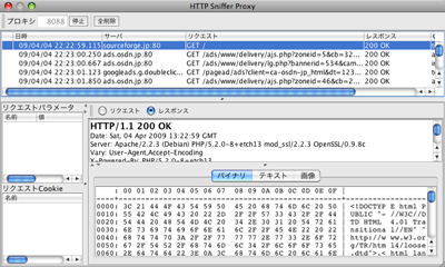 Java 製のプロキシ型 HTTP リクエスト/レスポンス Sniffer。クライアントから想定通りのリクエストが出ているか、サーバがきちんと Cookie を返しているかなど、ブラウザのソース表示だけでは分からない通信プロトコルを調査する Web ディベロッパー向けツールです。