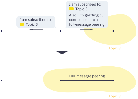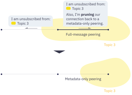 これによりピアは関心のあるすべてのトピックのソフトオーバーレイを維持できるようになる。オーバーレイはトピックリストに変更があるときはいつでもサブスクリプション制御メッセージを交換することによって維持される。サブスクリプチョンメッセージはそれ以上伝達されないため、各ピアはその直接のピアのみトピックビューを維持する。ピアが切断されるとそのピアはオーバーレイから削除される。
