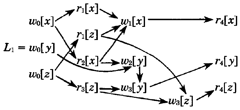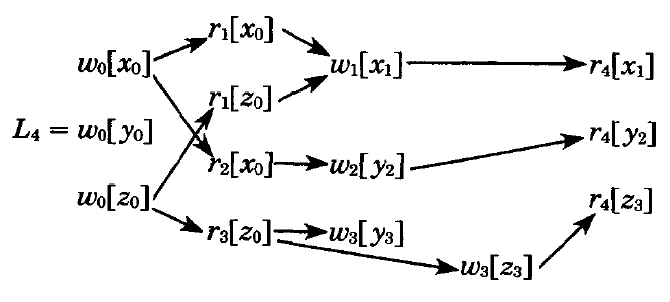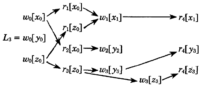 | L3.2. | \(i \ne j\) であるようなすべての \(r_k[x_j]\) と \(w_i[x_i]\) について、\(c_i[x_i] \lt r_k[x_j]\) かつ \(c_j[x_j] \lt r_k[x_j]\) ならば、\(c_i[x_i] \lt c_j[x_j]\) である。 |