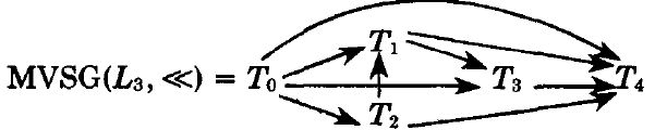 \(L\) とバージョン順序 \(\ll\) が与えられたとき、マルチバージョン直列化グラフ (multiversion serialization graph) \(MVSG(L,\ll)\) は \(SG(L)\) に次の辺を追加したものである: