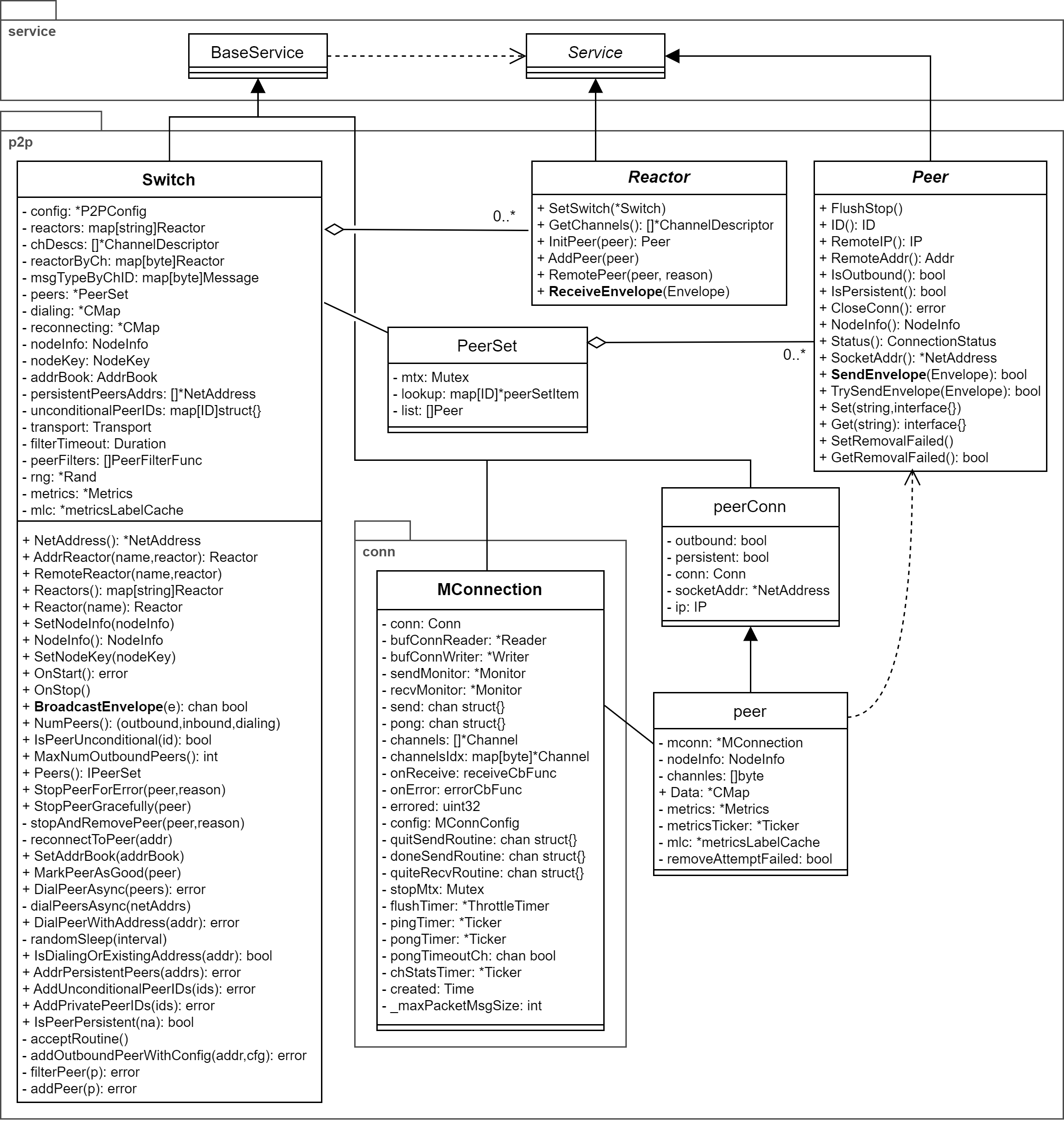 Keywords: MConnection, Switch, Peer, Envelope, Reactor, Channel
