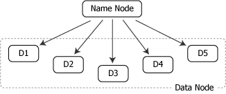 クライアントからの入出力要求を受けた Name Node はマッピングからそのデータのブロックに対応する Data Node を決定する。負荷集中を避けるために Data Node に対する代理のデータ入出力を行うのではなく、いったん入出力要求をクライアントへ戻し、クライアントは Name Node の応答に含まれる Data Node リストのいずれかに接続して入出力を行う。