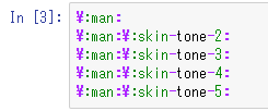 REPL や Jupyter Notebook 上の Unicode 入力はタブ補間シーケンスを利用することができる。例えば fʼ を入力するにはjulia> Σ(x) = reduce(x) do a, b a + b end Σ (generic function with 1 method) julia> Σ([1, 2, 3]) 6f\rapsTab の順で入力すれば良い。他に数学記号や Bold スタイル、合字、絵文字などに対応しており識別子を数式として見やすく表記できる。その他のシーケンスは Julia ドキュメントを参照。Skin Tone のような modifier symbols も可能。