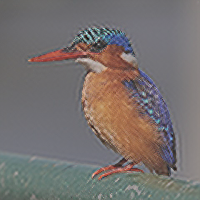 Fig.1 から Fig.3 は Open Images Datasets V4 のサブセット 10 万画像を使って学習した SRCNN を使用して、1/3 に縮小した画像から元の画像を復元したものである。色合いがくすんでいるが羽毛の質感や目の光が復元されていることが分かる。PSNR は 26.0dB であった。