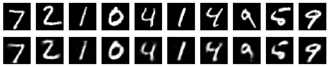 また Fig.3 は 10 個の手書き画像をオートエンコーダーを使用して復元したものである。これらは一度 32 次元の特徴量に変換されていることから MNIST の手書き画像データは 32 次元あれば表現可能であることを示唆している。