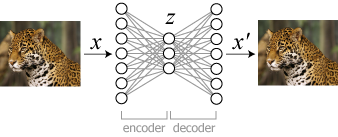 オートエンコーダー (autoencoder, 自動符号化器) はニューラルネットワークを使用した次元削減手法。次元の小さい中間層を設置した多層ニューラルネットワークを、入力と同じデータを出力するように学習することで、中間層部分の出力からより特徴的な表現を少ない次元で得ることができる。