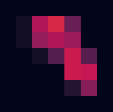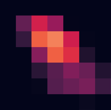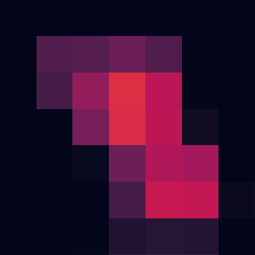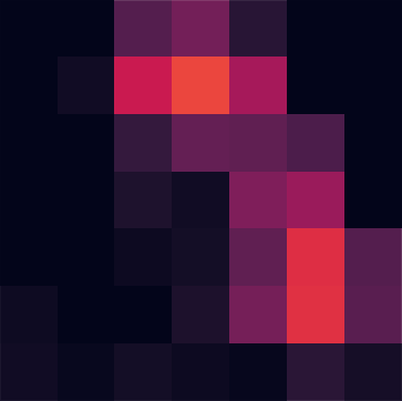 特徴強度の実体は 2 次元の行列である。カワセミ画像を入力することによって以下の 7×7 行列が得られる。