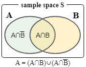 右図より \[ \begin{align*} P(A) & = P(A \cap B) + P(A \cap \bar{B}) \nonumber \\ & = P(B) \times P(A|B) + P(\bar{B}) \times P(A|\bar{B}) \end{align*} \] したがって以下のように書くこともできる。\[ \begin{equation} P(B|A) = \frac{P(A|B) P(B)}{P(B) \times P(A|B) + P(\bar{B}) \times P(A|\bar{B})} \label{bayes_by_set} \end{equation} \]