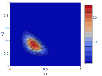 ディリクレ分布 \({\rm Dir}(\vector{p}; \vector{\alpha}+\vector{x})\) は積分して 1 となる確率密度関数であるため、上式に正規化項 \(\frac{1}{B(\vector{\alpha}+\vector{x})}\) を掛ければ事後確率とすることができる。\[ \begin{equation} \label{bayes_inferential} P(\vector{p}|\vector{x}) = \frac{1}{B(\vector{\alpha}+\vector{x})} \prod_{k=1}^K p_k^{x_k + \alpha_k-1} = {\rm Dir}(\vector{p}; \vector{\alpha}+\vector{x}) \end{equation} \] MAP 推定ではこのディリクレ分布の最頻値 (最も確率が高くなる位置の \(p\)) を求めていたことになる。