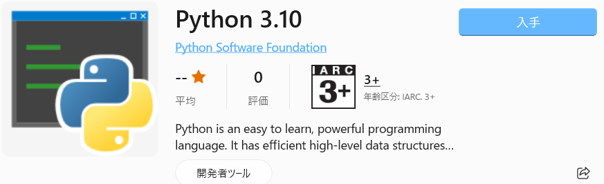 Python 3 は Windows 10 の Microsoft Store からインストールすることができる。