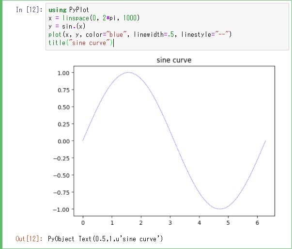 Jupyter Notebook 上で Julia から利用できるグラフ描画パッケージはいくつかあるが一通り機能が揃っているのは PyPlot である (ただし Python のネイティブライブラリを利用するため Windows ではエラーが起きることがある)。