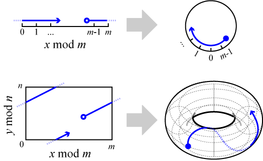 有限体を 2 次元のユークリッド座標系に拡張するとドーナツ状の構造 (トーラス) となる。トーラスは楕円関数の像である楕円曲線を複素面に拡張した形と同じであることから、この拡張によって離散対数問題の有限体に楕円曲線を利用できることが分かる。