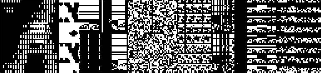 暗号鍵と暗号化/復号化処理をビットの並びとして比較したとき、暗号鍵は非常に大きな定義域からランダムに選択されるためエントロピーが高く、一方でコンパイル済みのバイナリは限られた数の命令セットの中から選択された命令の並びであるためエントロピーが低い。Fig 4 は鍵を含むプログラムのビットの並びをピクセルに置き換えた画像である。データ保護されていない実行ファイルやメモリ上の並びから暗号鍵の位置を推測することは困難ではない。